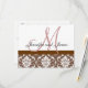Brown Damask OSA kort med Monogram. Layout Design av Elke Clarke ©2010. Licensierad grafikAnpassa den här designen med din specifika bröllop-information och välj färg och typ av pappert papper. Du kan också ändra bakgrunden till färg och textens bakgrund. Använda bara anpassningsknappen. Detta kort levereras med kuvert och passar in i den 5 x 7 tum långa inbjudan som Zazzle har.