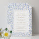 Chic, färsk och lekfull. Den här fantastiska två-i-ett-bröllopsinbjudan innehåller en OSA-förfrågan på baksidan med Qr-koden. Det omfattar en uppsättning trendig och modernt typsnitt, mot en benvit bakgrund och dammig blå och vit blommigt ram. Blommönstret upprepas längst bak samt anpassningsbar och QR-kod. Cheeky och roligt. Anpassa för att göra det till ditt eget.