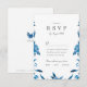 Bröllop OSA för blommigt av blå och vit vattenfärg Kort