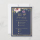 Elegant Blått, guld och OSA-inbjudan till rosa för blommigt. Den här botaniska rosa blommigt Bröllop-detaljinbjudan till en lyxfest är perfekt för alla klassofistikerade och sofistikerade glam-flickor. Den här designen är perfekt för en händelse i trendig och snyggt party. Anpassa den här designen med egen information om meddelande och personlig. Alla designer skrivs ut.