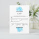 Den här designen har elegant blå vattenfärgsblommor. Den vackra blåblomman färg i buquet placeras på en svart elegant. En enkel vattenfärgsdesign i elegant av blommor som ordnas ovanför och under ordalydelsen med en mittblomma som förbinder titeln. Elegantens skriptteckensnitt som används för titeln kombinerat med en enkel text. Den här kortdesignen för accepterande av bröllop OSA är perfekt för alla bröllop-teman. Perfektens utformning för alla säsonger. Det finns också möjlighet att matcha bröllopsinbjudningar och andra artiklar i kontorsartiklar.