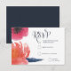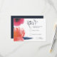 Fantastisk mjuk rosa och orange vattenfärgblommor med marinblå löv och accenter. Fylls i med OSA typografi i härligt skript/kursivt contemporary. Fullt matchande bröllopsinbjudan finns tillgängligt! Anpassa din online och få dem levererade till din dörr. Var och en av dem levereras med ett vitkuvert som motsvarar storleken och som ingår i kostnaden.