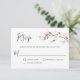 Med modern charm och elegans har den här bröllop-responskortsdesignen ett neutralt färg-schema med vita blommigtar i mjuk vattenfärgsvit och benvit med efterföljande grön. Utformningens framsida har en sprit av små vita blommar och baksidan innehåller en vacker bukett av vit ros och hydrangea med andra blandade blommar. Det här är ett bra val för vår och sommaren bröllop. Anpassa textmallen med det svarsdatum som krävs.