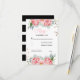 Svarskort för rosa blommor och svart och vitt rand bröllop