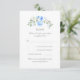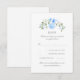 Svarskort romantiskt och elegant bröllop med blått handmålat vattenfärgat blommor och andetag.