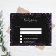 Observera att denna OSA är papper och mycket tunn. Kuvert ingår inte. Om du vill ha tjockare RWVP-kort (samma design) kan du besöka vår butik. Trendigets svarta bakgrund, dekorerad med mousserande lila faux glitter stoft. Anpassa och lägg till svaret efter datum och ditt namn.