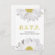 En bröllop OSA med vit bakgrund på fram- och baksidan med daisy överst och grund. Daisy också på baksidan. Anpassa text fram och tillbaka med information om tillfälle. Leta efter matchande artiklar på Rosa Schoolhouse.