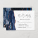 Det moderna kanten i denna elegant, som är lämnat i handen, har ett marint blått vattenfärgsagat gräns som trimmas med faux ro guld glitter. Rubriken "Kinely Reply" visas i handskriftsskript, med anpassade text nedanför i färgat grått-färgteckensnitt på vit bakgrund. Den omvända sidan har en matchande marin blå utformning och ro guld-agatdesign.