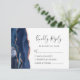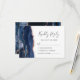 Det moderna kanten i denna elegant, som är lämnat i handen, har ett marint blått vattenfärgsagat gräns som trimmas med faux ro guld glitter. Rubriken "Kinely Reply" visas i handskriftsskript, med anpassade text nedanför i färgat grått-färgteckensnitt på vit bakgrund. Den omvända sidan har en matchande marin blå utformning och ro guld-agatdesign.