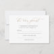 Det här guld-kalligrafkortet i snyggt är idealiskt för ett fantastiskt bröllop. Den enkla designen visar ett minimalistiskt kort med charmerande och vismisk guld färg typografi. Du kan enkelt sammanställa din gästlista i bröllop och dansa golv sång samtidigt! Svarskortet frågar effektivt om gästerna kommer att närvara vid bröllop och vilket sång kommer att få dem att dansa. Obs! Den här utformningen omfattar inte äkta guld-folie.
