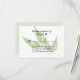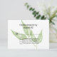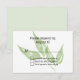Vitt svarskort från bröllop, med vattenfärgsgrafik av grönt plant löv, på framsidan. Baksidan av OSA kort görs ljust grönt. Anpassa texten fält till kostym som du behöver.
