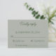 Enkel, modern och naturinspirerad - den här OSA kort för minimal Grönt är perfekt för din bröllop-svit. Svarskortet har en ren layout med delikat skript och elegant-muterade gröntar. Det är idealiskt för par att planera ett minimalistiskt, rustiskt eller trädgårdsbröllop. Anpassa med dina detaljer och samordna ditt kontorsmaterial utan problem. Underbar för vår, sommar- eller utomhusceremonier.