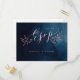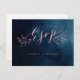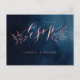 Elegantens moderna bröllop OSA-vykort för kalligrafi med rostfri blommigt i mjuk rosa på mörkens blå vattenfärgsbakgrund, underbar för modern rustik bröllop eller vår bröllop på kvällen. Se alla matchande delar i samlingen nedan.