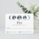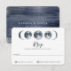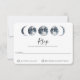 Vackra kelestialfaserna i Måne i sjöblå vattenfärg, bröllop OSA. Baksidan av kortfunktionerna tvättar vit vattenfärg och två linjer för malltext för namn och datum.