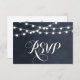 Chicens moderna sommarsvarskortsdesign med enkel elegant glödande sträng ljus som hänger över överkanten och en klassblandning av modernt och kalligrafiskt skript typsnitt på en utskriven bild av vattenfärgen struktur. En enkel och snyggt, perfekt till sommaren! Klicka på knappen CUSTOMIZE IT för att anpassa typsnitt, flytta texten och skapa din egen unika inbjudan av typen one-of-a-natura-modell.