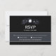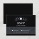 Ett svarskort för svartvit bröllop OSA för svartvit blommigt i elegant. En fråga om kostrestriktioner har tagits med som en valfri textrad som kan tas bort om detta inte behövs eller ändras till kostym för dina egna behov.