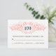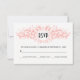 Leverkorall och vita blommigtar Svarskort på vapensköldens bröllop OSA. Den visar en förklädd vapensköld med blommor. Baksidan innehåller en koral och vit polka punkt mönster.