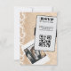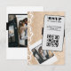 Gör din planering i bröllop sömlös med den här snyggten och det moderna bröllopet OSA. Med ett romantiskt foto av paret och en bekväm QR-kod för enkla svar blandar den här designen sig av tidlös elegans med modern teknik. Bakgrunden till beige blommigt snöre tillför en aning vintage charm, medan det fetstilta typografin och e-postalternativet garanterar att gästerna kan svara med lätthet. Idealisk för 2025 bröllop är denna OSA kort perfekt för par som vill ha både sofistikering och enkelhet.