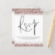 Ett ekonomiskt alternativ i BUDGET på en mindre storlek på 4,5 x 5,6 tum (110 lbs vikt), som är av samma tjocklek som ett vykort (är dock inte lämpligt för använda som vykort). OBSERVERA ATT DET FINNS EN PER lakan. Budgeterat QR-kodhölje för Ro Guld Glitter Bröllop OSA... Ett bekvämt tillvalshölje där du kan be dina gäster att söka igenom QR-koden på webbplatsen bröllop till OSAN. En snyggt ställer in typografi i svartvitt för huvudrubrikens OSA som kompletterar resten av texten som du enkelt kan anpassa, med QR-kod på baksidan. Byt helt enkelt ut mot din egen. Gräns i Faux glitter i ro guld står på båda sidor.