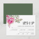 Rosa vattenfärgsbukett av blommor skriver typografiskt bröllop OSA med val av måltid. Det visar en vacker bukett av cactus blommor och löv i rosa och i er text. Ord OSA är i manustypografi. Baksidan är av solid grönt färg.