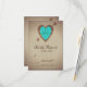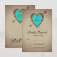 OSA kort för Landsbyggsbröllop av Rustic Teal Heart-puls för responskort. Lätt att redigera. Ett tryckt trähjärta med tealturkos akvablått accenter på en bedrövad brunt bakgrund som ser ut som gammal linne eller burlap. Perfekt för ett landsbyggsbröllop. Initialerna från bruden och brudgummen är inne i hjärtat. Matchande objekt: kort för hjärt-bröllop OSA, rustik OSA kort, kort för bröllop OSA av hjärta och pil, landsbyggsbröllopets osa