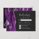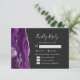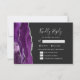 Det moderna djurutrymmeskortet i elegantens lämnat kant har ett lila vattenfärgsagat i gräns som trimmas med faux silver glitter. Rubriken "Kinely Reply" visas i handskriftsskriptet silver grått, med den återstående texten i textfältet Koperplåt och kursivt typsnitt mot svart bakgrund. Innehåller utrymmen där gästerna kan börja välja mellan tre redigerbara poster. Den omvända sidan har en matchande lila- och silver-agate-design.