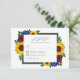Utformningen har solblommor, ro och vilda blommor av elegant med en gyllene gult-, burgundy- och blå färg-palett. Utformningen har även ett kol-grått-ram. Du kan ändra bakgrunden färg framtill och tillbaka till färg efter eget val eller lämna båda inställda på vitt.