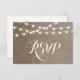Chicens moderna sommarsvarskortsdesign med enkel elegant glödande sträng ljus som hänger över överkanten och en klassblandning av modernt och kalligrafiskt skript typsnitt på en utskriven bild av vattenfärgen struktur. En enkel och snyggt, perfekt till sommaren! Klicka på knappen CUSTOMIZE IT för att anpassa typsnitt, flytta texten och skapa din egen unika inbjudan av typen one-of-a-natura-modell.