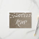 Chicens moderna sommarsvarskortsdesign med enkel elegant glödande sträng ljus som hänger över överkanten och en klassblandning av modernt och kalligrafiskt skript typsnitt på en utskriven bild av vattenfärgen struktur. En enkel och snyggt, perfekt till sommaren! Klicka på knappen CUSTOMIZE IT för att anpassa typsnitt, flytta texten och skapa din egen unika inbjudan av typen one-of-a-natura-modell.