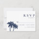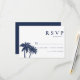 Bröllopet OSA för tropisk persikoflotta i handflatan - har handflatan träd i ett system för marin blå och vit färg. Koordinerar utmärkt med bröllopsinbjudan och andra artiklar i samlingen.
