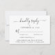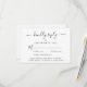Elegant bröllop OSA kort med ett "vänligt svar" i ett skript för snyggt med dekorationer, enkel och modern typografi, alternativ för personlig-menyer och namn gått med av ett hjärta på baksidan.