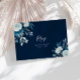 Underbara vattenfärgade blå botaniska blommor på mörk blått bakgrund. Du kan ändra färg och text så att de stämmer överens med bröllop.