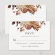 Vitt vattenfärgskort med koppar Blommigt Bröllop OSA. Den här eleganten och den orustiska bröllopet OSA har handmålade vattenfärger, bränd orange och terracotta löv, kräm och beige dahlias, och vacker perfekt av rost-färgad ro för ett fall eller höst bröllop!
