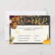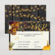 Rustik höst faller blommor och pumpa svarskort för bröllopsinbjudan med måltider på mörkens bruna lingbakgrund.