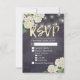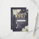 Bröllop OSA-svarskortsmallar - Elegant White Hydrangea Flowers och String Ljus på Vintage Navy Blue Blommigt Linen Background. En Perfekt för din stora dag. Alla textstorlekar i stil, färg, kan ändras för att passa dina behov!