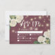 Bröllop OSA-svarskortsmallar - Elegant Vita, vackra vattenfärgsHydrangea Flowers och String Ljus på Burgundy Red Background. En Perfekt för din stora dag! Alla textstorlekar i Stil, Färg kan anpassas efter dina behov.