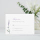 Ett enkelt svarskort och ett svarskort från elegant bröllop med en vattenfärgslavender-stam och svarstitel i lilac-skript. Matchningsinbjudan är tillgänglig