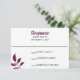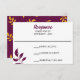 Vårt Bröllop OSA-kort för Guld är en OSA kort för perfekt som passar din inbjudan till Löv i Guld. Det här kortet har ett fantastiskt plommon löv elegant placerat grund på det här responskortet med gott om utrymme för dina gäster att skriva sina svar på din bröllopsinbjudan. Baksidan av den här OSA kort har den bedövande guld-löven mot plommonbakgrunden.