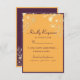 Elegant, moderna, juveltoner, kort för lila och gult med bröllop OSA med mat, guldfärgad snöre i guld och enkel kalligrafi.