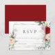 Bröllop OSA-kort | Eukalyptus löv, viskvlande löv tillsammans med burgundi- och elfenbensponnyer är ett stift för det geometriska guld ram. Rik Vibrant och elegant med försiktighet. Koordinerat färg på omvänd anpassade - Innehåller en enkel klassisk text stil (som kan ändras om du bara klickar på Anpassa den här mallen och sedan väljer Klicka för att anpassa ytterligare - här kan du ändra teckensnitt och text färger samt bakgrund färg) Detta ingår i en designsamordnad bröllop-svitsamling som är designad av BarefootBride™.