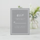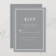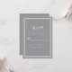 Kortet för enkelt hölje och OSA i elegant bröllop har en minimalistisk utformning med dubbla ram gräns i skarp vit på trendigets ultimata grått-bakgrund. Anpassa till datumet för bröllop. Det finns platser som din gäst kan använda för att lägga till namn och svar för ett retursvar. Bokstäver och skript matchar skarpt vitt. Kortets baksida matchar fast grått.