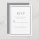 Kortet för enkelt hölje och OSA i elegant bröllop har en minimalistisk utformning med dubbla ram gräns i ultimata grått på en skarp vit bakgrund. Anpassa till datumet för bröllop. Det finns platser som din gäst kan använda för att lägga till namn och svar för ett retursvar. Bokstäver och skript är i matchande grått. Kortets baksida matchar fast grått.