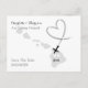 Stilfull destination bröllop spara datumet vykort för par som gifter sig på Hawaii. Med en silvergrå siluettkarta, flygplan och svepande hjärta. Mycket cool och lätt att anpassa med dina personliga detaljer.