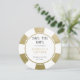 Låt dina vänner och familj veta datumet för din kommande bröllopsdag. Det här roliga "save the date"-kortet i designen av en pokerchip kommer att bli en stor hit hos dina vänner och familj. Lägg till dina detaljer för ett destinationbröllop i Vegas eller på en annan kasinoinspirerad lokal. I falskt guld och vitt.