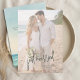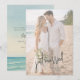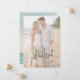Dela med dig din nyligen gifta-stund med detta moderna bröllopsbryllop på stranden, med en mjuk akvarellmotiv med havet i kombination med en layout med fullt foto. Perfekt för par som valt en intim ceremoni vid havet, destinationbröllop eller privat bröllop, förenar detta meddelande naturlig kustnära skönhet med ren, modern typografi.