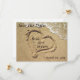 Beach tema Spara datum-kort med era namn i ett hjärta ritat i sanden! Lättanvänd mall - lägg bara till brudens och brudgummens namn tillsammans med bröllopsdatum i det angivna utrymmet.