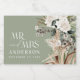 Bröllop-vin-etiketten Mr. och Mrs. pampas-gräs, eukalyptus botaniskt svart, vit och sage grönt modern boho-elegant budgetera party-dekorgåva.