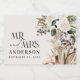 Bröllop-vin-etiketten Mr. och Mrs. pampas-gräs, eukalyptus botaniskt svart, vit och sage grönt modern boho-elegant budgetera party-dekorgåva.