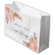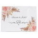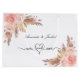 För en boho, bohemisk stil bröllop. En chic vit bakgrund. Dekorerad med roséguld, rosablommor, pampas gräs. Personlig och lägg till namn. Med texten: Herr och fru, med ett hjärta. Namnen skrivs med en modern handskriven stilsnurr.