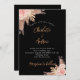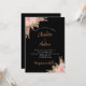 För en modern boho stil bröllop. Snyggtens svarta bakgrund. Dekoreras med ro guld och rosa blommigt, rosor och pampasgräs. Anpassa och lägg till namn och detaljer.